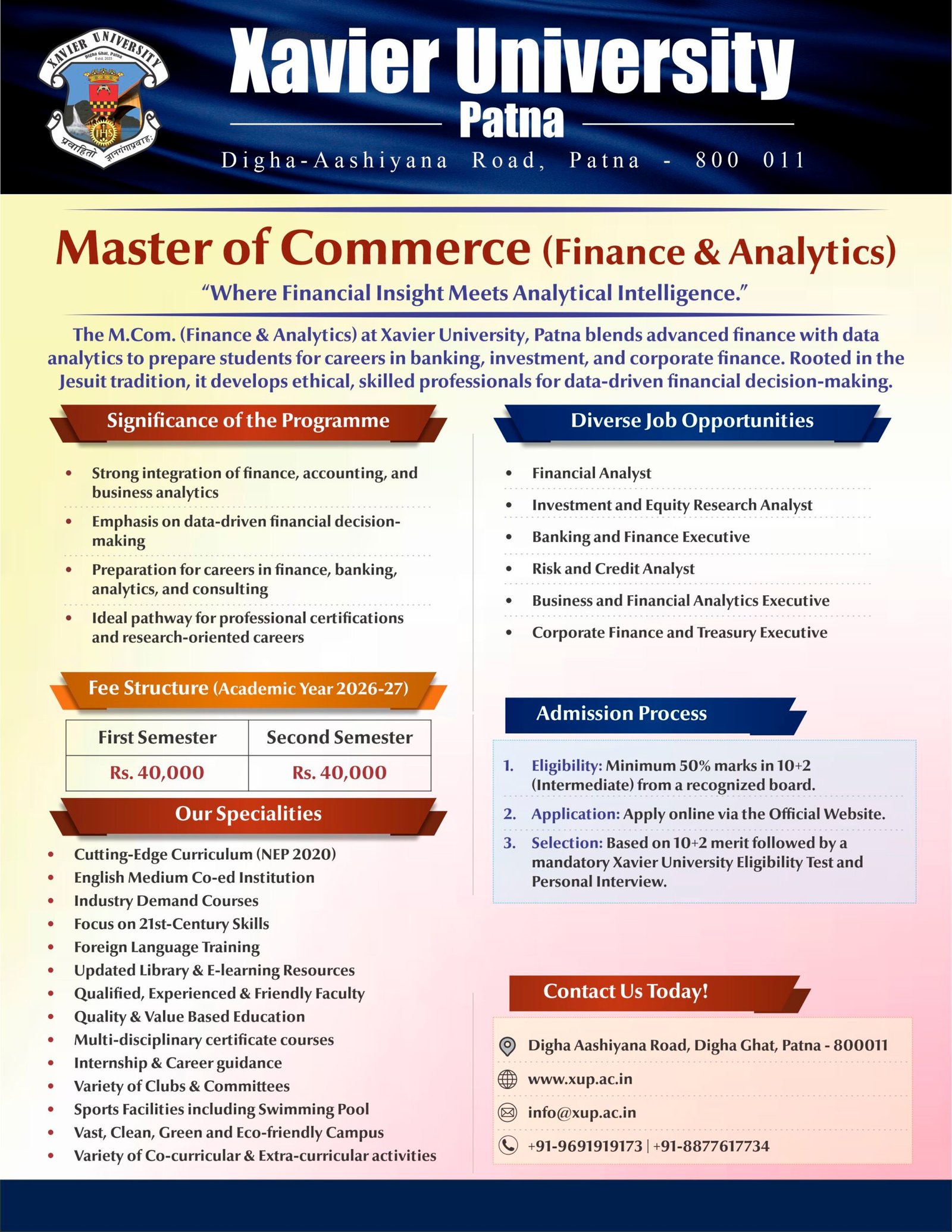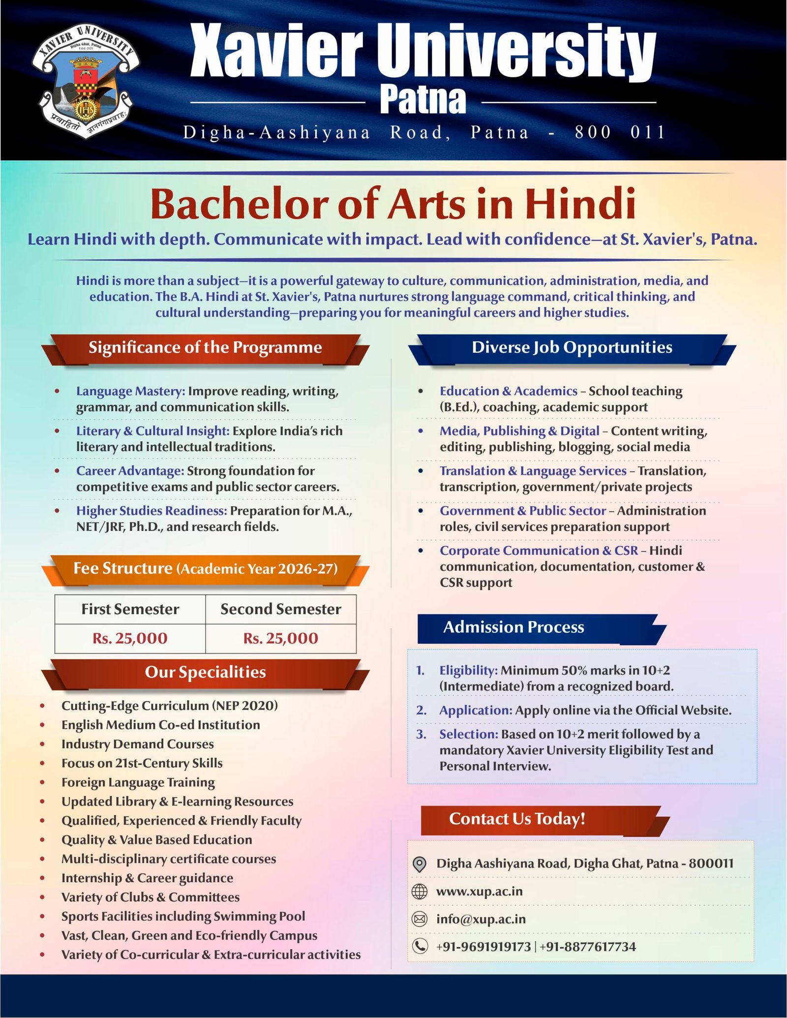 "The vibrant campus life, excellent infrastructure, and industry-focused teaching methodology made my time at Xavier unforgettable."